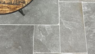 Bretignac ist ein strapazierfähiger Boden in aschgrauer Farbe. Es ist ein kompakter Stein, bei dem Kratzer und Flecken keine Chance haben. Der Boden ist in einer 90x60 cm großen Fliese oder in einem großen romanischen Verband erhältlich, bei dem Fliesen unterschiedlicher Größe in einem festen Muster verlegt werden.